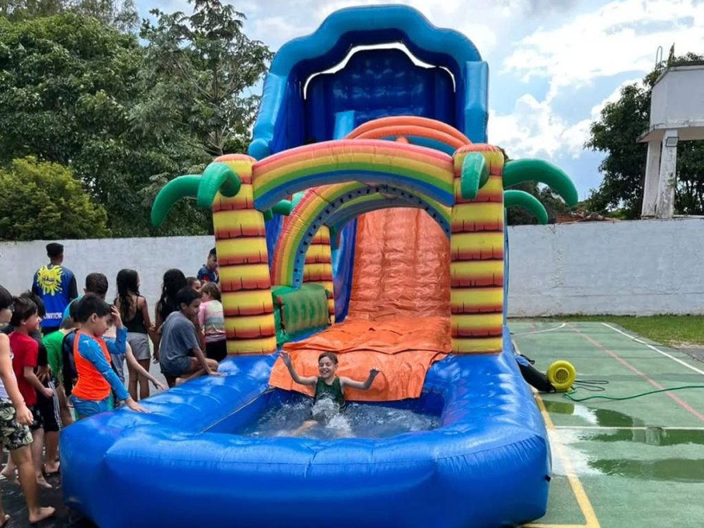 Uma tarde daquelas que todo mundo esperava! Depois de dias de chuva, o sol voltou só para ver essa festa acontecer. As crianças esperaram aproveitaram cada gota! O Colégio Millennium virou pura diversão com o toboágua e as crianças aproveitaram cada segundo. O presente do Dia das Crianças muito esperado por todos!