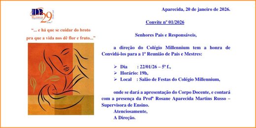 20/01 - 20 Aparecida, 20 de janeiro de 2026 Convite N° 01/2026 Senhores Pais e Responsáveis, a direção do Colégio Millennium ...